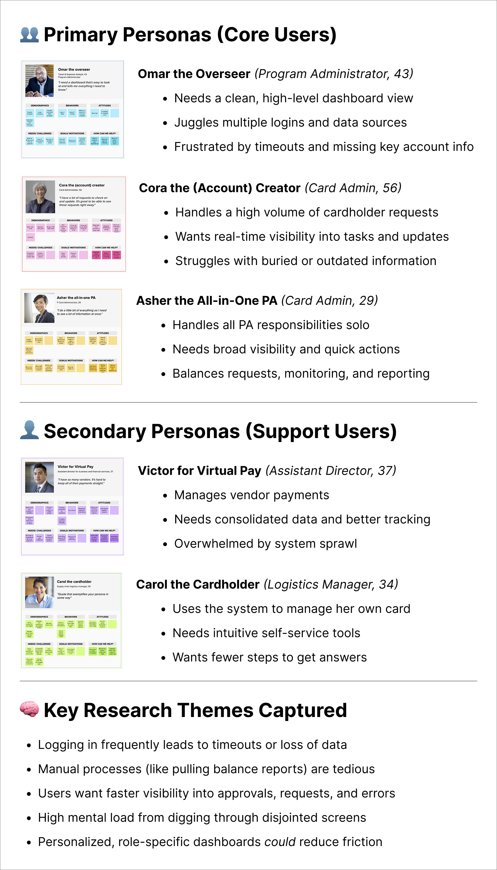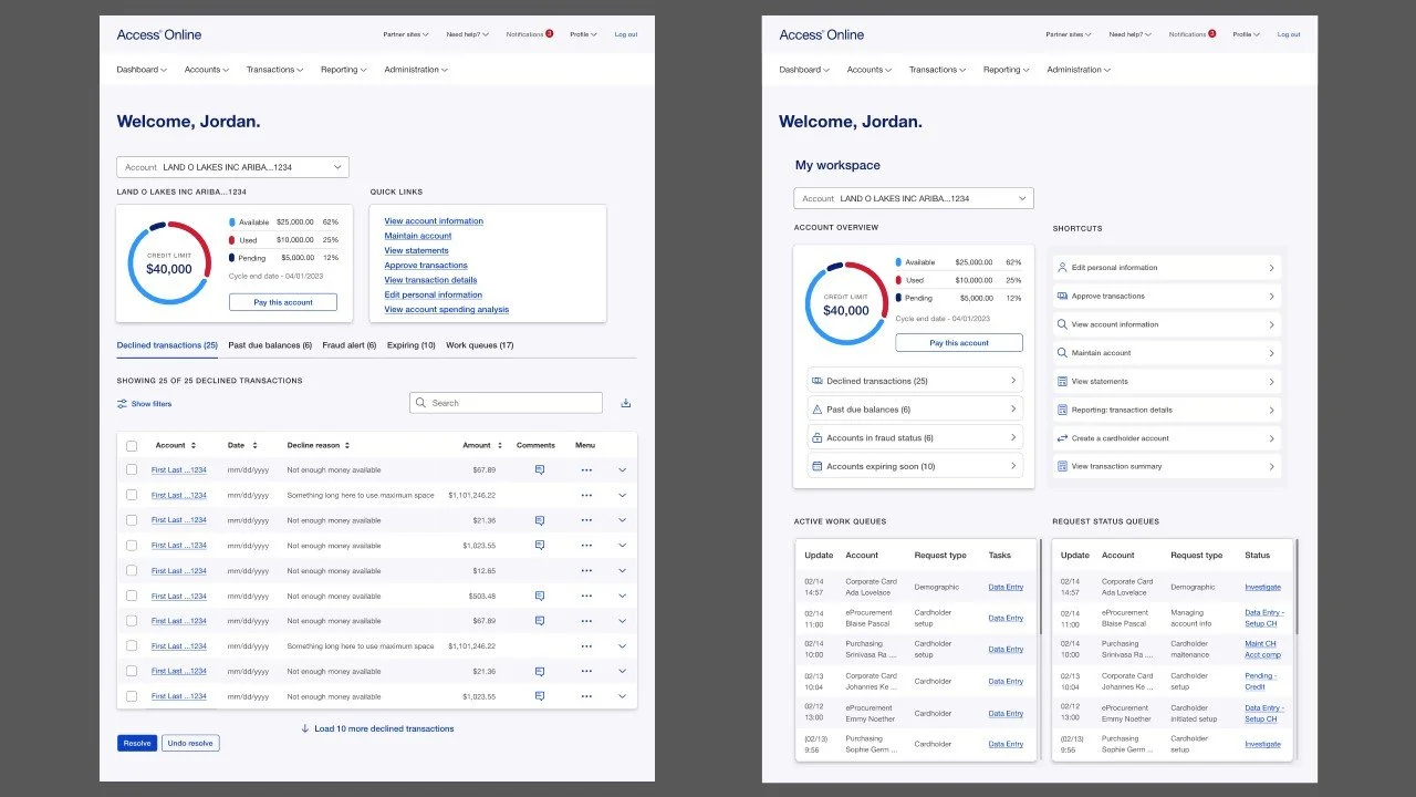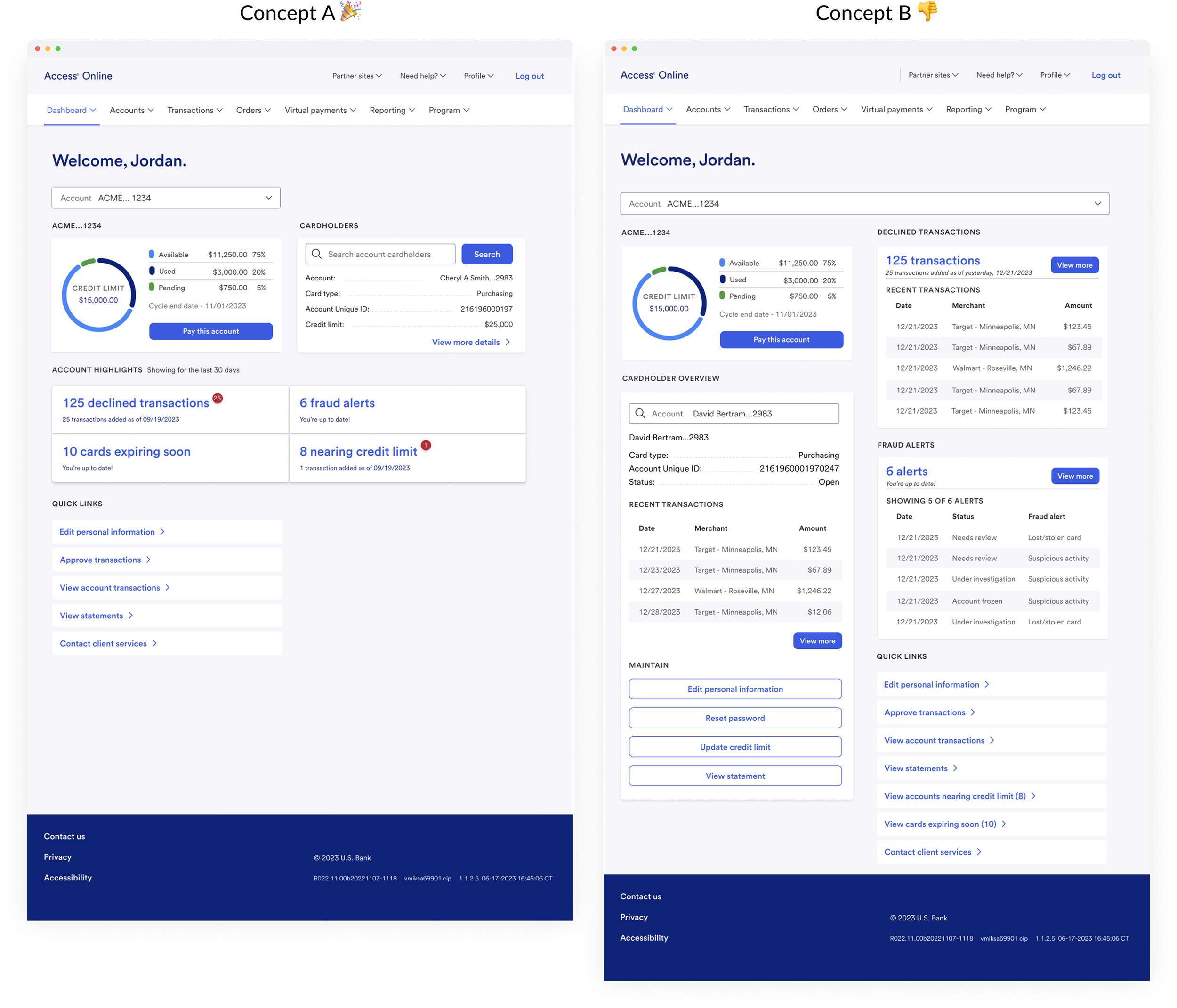 When I joined U.S. Bank in 2022, Access Online only greeted administrators with a simple โWelcomeโ page. Program Administratorsโfinance and procurement professionals responsible for issuing cards, setting limits, and monitoring transactionsโlacked a clear way to see critical information or act on urgent issues.